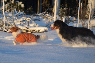 Rokka vauhti raketti on viettänyt kanssa aikas hiljaiseloa harrastuspuolella kun oma aika vaan ei ole riittänyt ja se välillä kyllä harmittaakin ja ankarasti. Rokka on yhtä iloinen ja energinen kuin ennenkin, kaikista parasta on Rokan mielestä maailmassa metsässä juokseminen ja peuhaaminen, sekä tietenkin lumessa kieriminen, sen kanssa lumikelillä remmissä kulkeminen lähes mahdotonta kun voi heittäytyä ihan täydestä ravista maahan selälleen ja vaan kieriä onnessaa siellä, hassu mies!!!